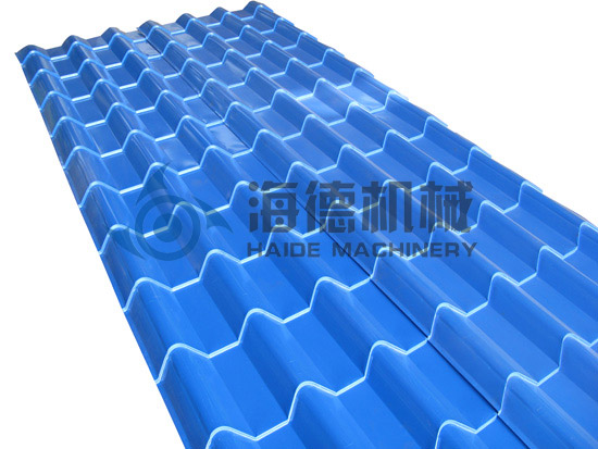 彩鋼琉璃瓦設(shè)備主要由放料機(jī)、進(jìn)料導(dǎo)入平臺、成型主機(jī)、沖模壓型裝置、成型剪切裝置、液壓站、電腦控制系統(tǒng)、成品托架等幾部分組成。